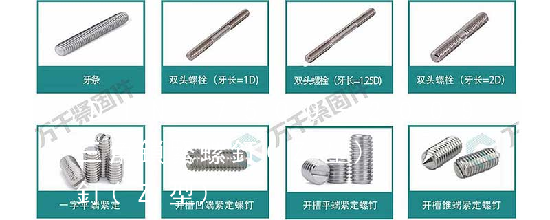 按頭部形狀 六角頭 頭部起子槽 內六角孔圓柱頭 一字加十字槽沉頭要求全螺紋與螺栓區別 要求螺紋部分直徑較粗4)緊定螺釘 錐端——適于零件表面硬度較低不常拆卸常合末端 平端——接觸面積大、不傷零件表面,用于頂緊硬度較大的平面, 螺栓有:1、方頭螺栓,2、半圓頭方頸螺栓,3、十字槽盤頭螺釘,4、內六角沉頭螺釘,5、方螺母C級,6、蝶形螺母,7、六角頭螺栓,8、十字槽盤頭自攻螺釘。大小有M18、M6、M8、M16、M10、M12、M14、M20等型號。通常用