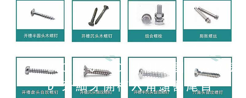 1、Flat:平頭 (鎖入后,頂部與工作件齊平)2、Oval:色拉頭、O頭、半沉頭 3、Round:圓頭 4、Pan:圓扁頭 5、Truss:大圓扁頭 6、Hex:六角頭 A-5:Finish Code/外觀處理。公制自攻螺絲 :于品名后方直接標示 Tapp P是指頭型是PAN頭;A是指尖尾牙,B是指鐵鋼牙,即PA元頭尖嘴鋼牙,PB元頭平嘴鋼牙。 自攻類: ◆圓頭自攻螺絲PA ◆圓頭平尾自攻螺絲PB ◆圓頭割尾自攻螺絲PT ◆圓頭帶介自攻螺絲PWA ◆圓頭帶介平尾自攻PWB ◆圓頭帶介割